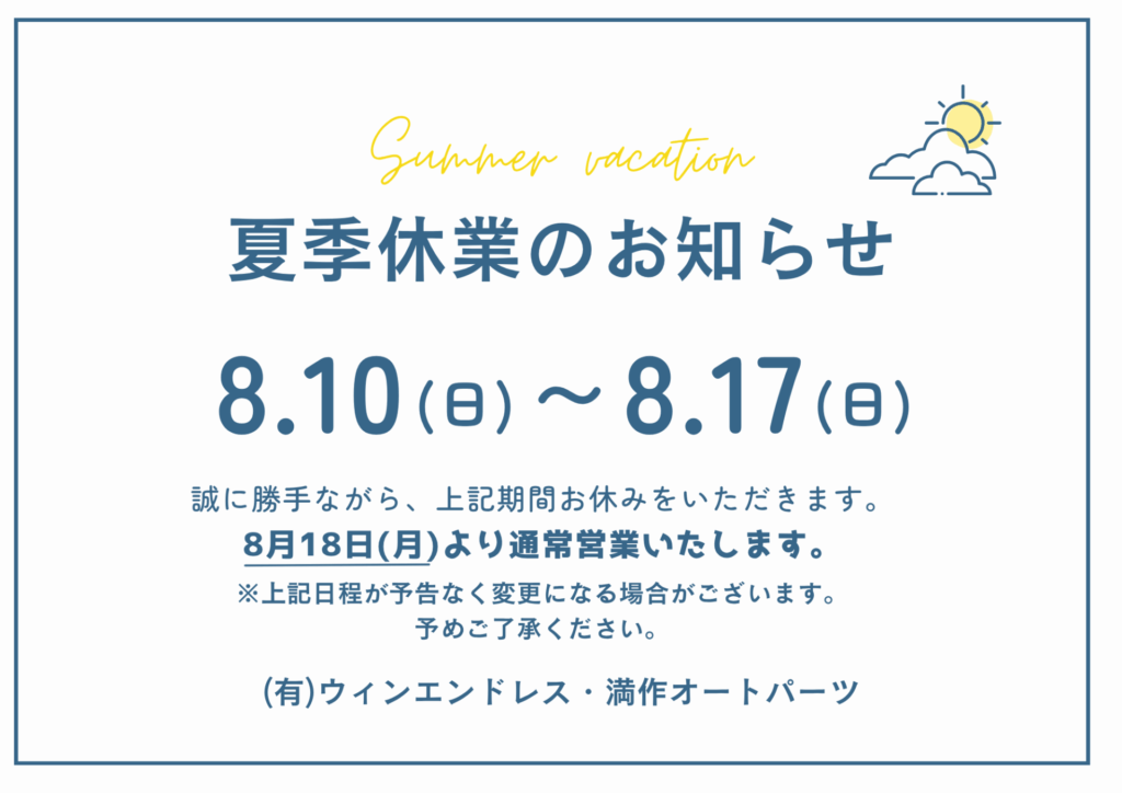 今年も夏季休業が近づいてきましたので、日程をお知らせいたします!