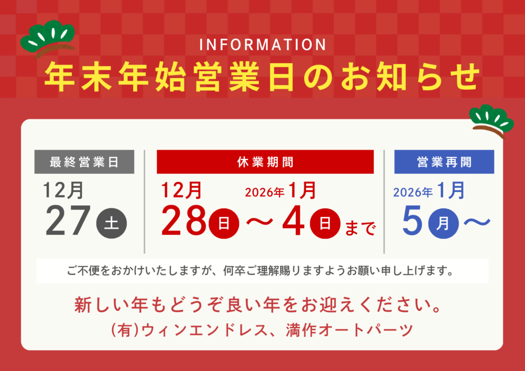 年始は2026年1月5日 10:00より営業開始となります!!